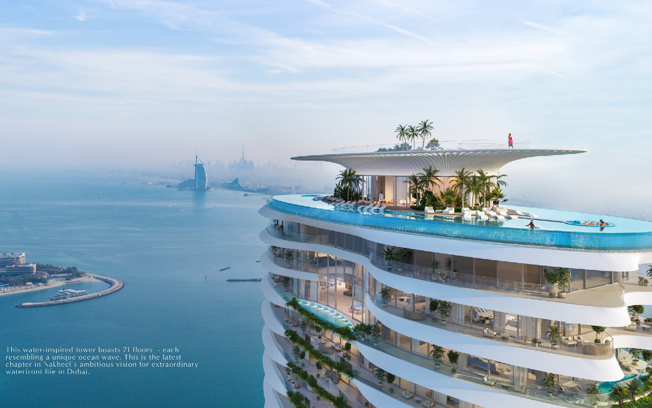This Palm Jumeirah newest landmark allows its residents a truly world-class lifestyle, exploring a series of sweeping terraces and glistering pools and verdant greenery, where the exclusive life connects you to the sea vibes. The magnificent terrace areas of the façade are boasted with views over the iconic skyline, where the extreme design comes with 360-degree panoramic views.